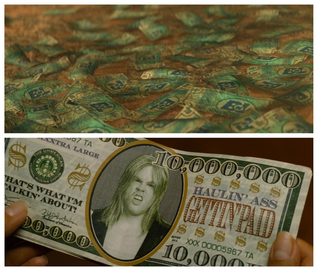 Hyperinflation and a broken economy have led to ten-million-dollar bills as common currency, complete with corporate branding.